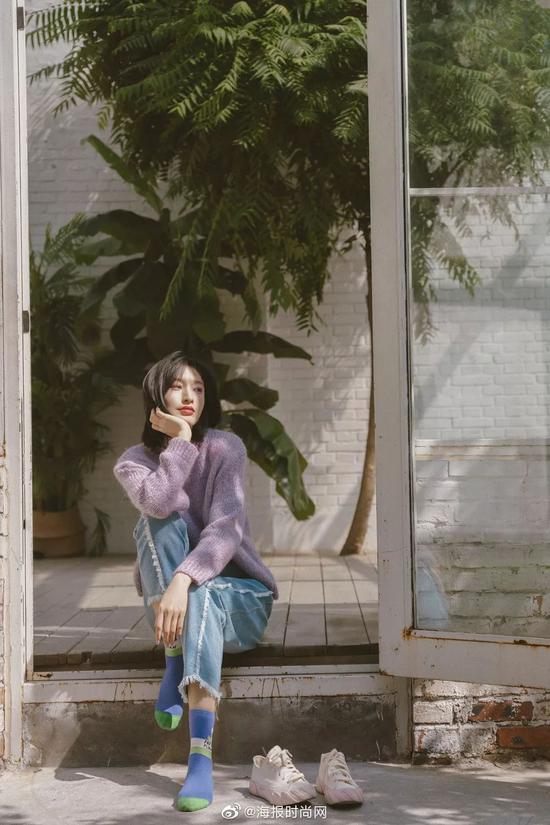 暖暖的香芋紫也是秋天的颜色,慵懒又惬意的感觉别提多舒服了,最好就像图中的张俪一样,找个小院,晒会儿太阳,撸撸猫,看看书,混过一个美好的午后。