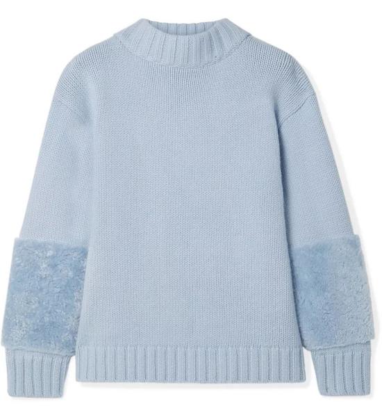 SALLY LAPOINTE羊毛皮边饰美利奴羊毛羊绒混纺毛衣