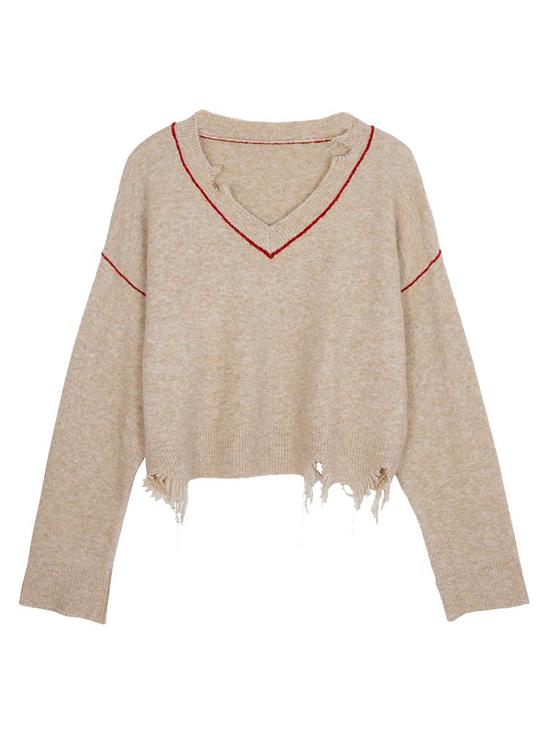 杏色牛绒针织毛衣