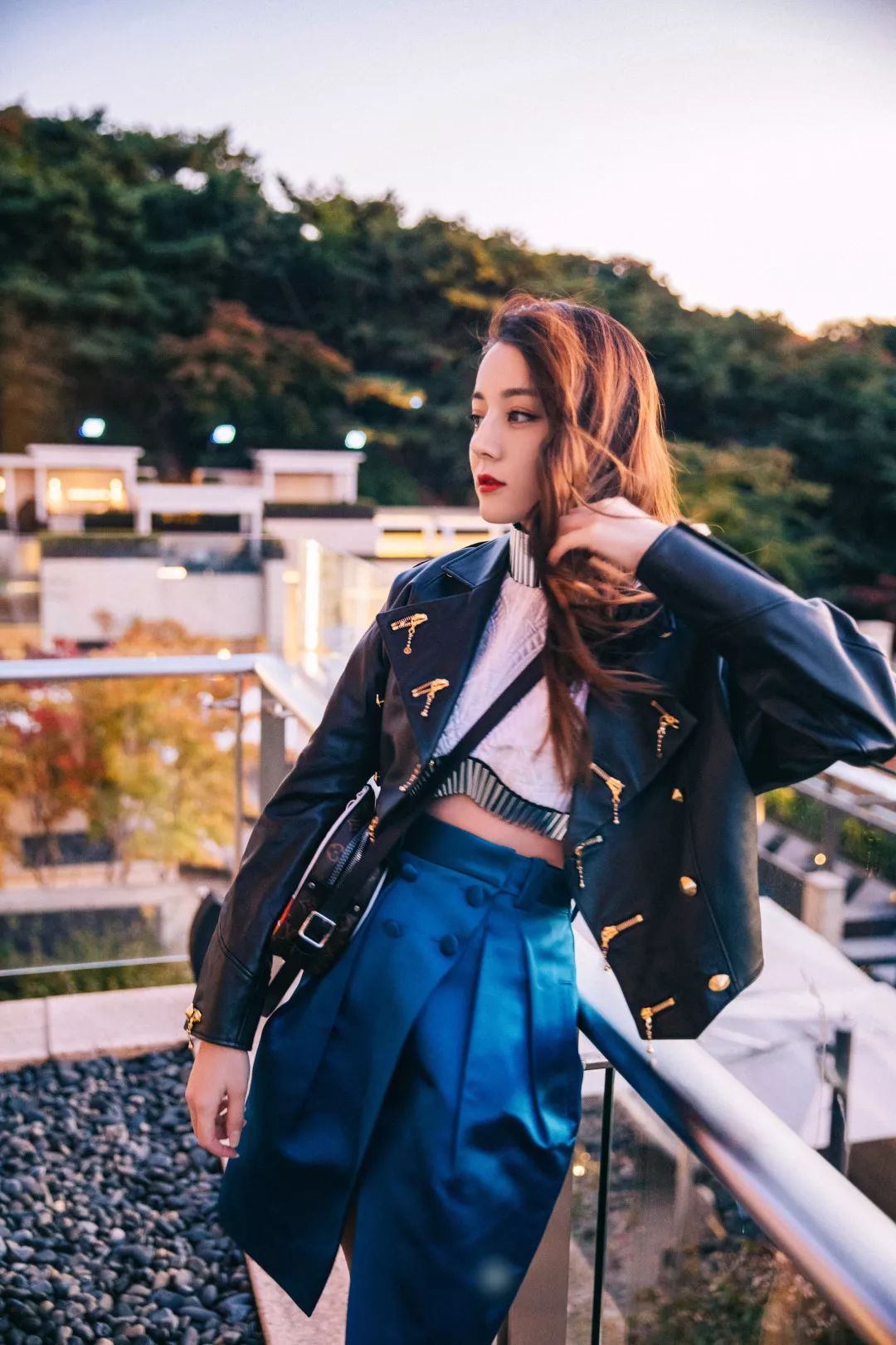 迪丽热巴的皮衣造型则多了几分休闲与时髦元素。