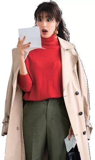 军服式风衣×红色针织衫的知性造型让整个人看起来战斗力十足。