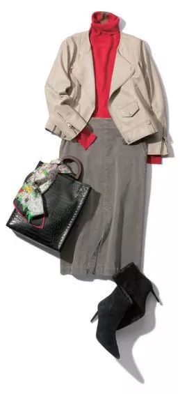 偏厚质感的针织款紧身半身裙,堪称寒冷天气的人气单品了,与皮衣混搭,凸显雅致与随性。