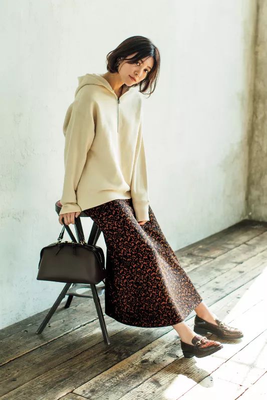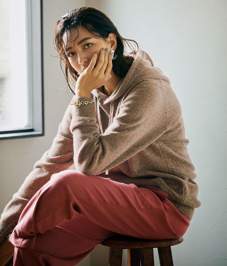 作为内搭,连帽针织也是很不错的选择。通常卫衣给人的感觉都太过俏皮不正式,但连帽细针织不仅能打造冬季层次感,也保留了针织的温柔与优雅。