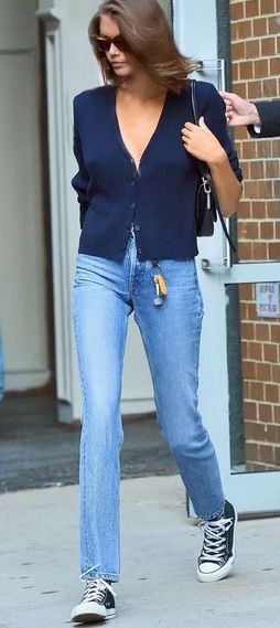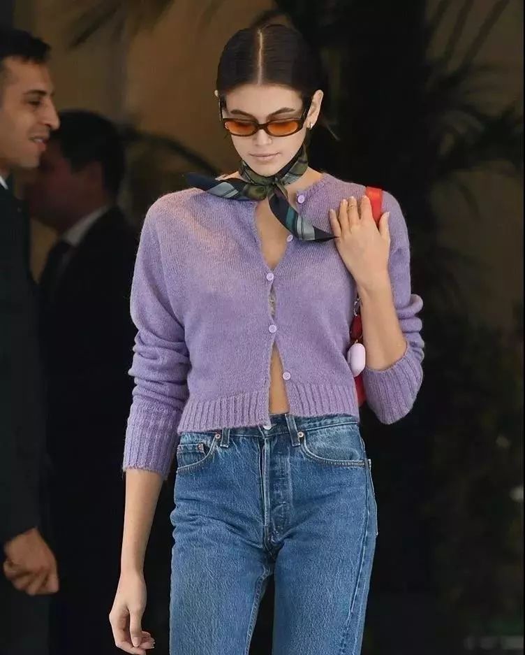 短款针织开衫也是今年备受宠爱的时尚单品,Jennie、Bella、Kendall和一众时尚博主都贡献了不少精彩穿搭。