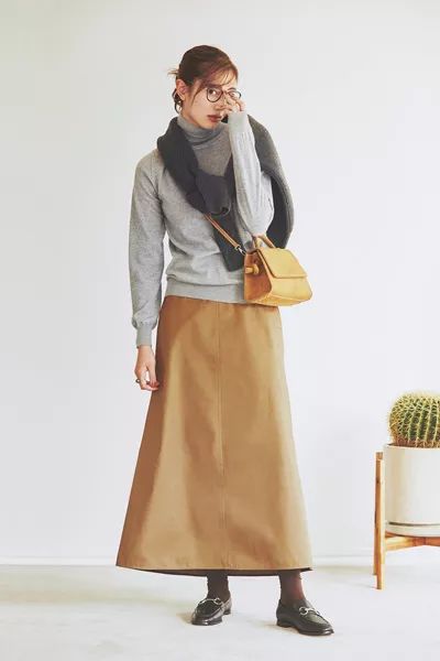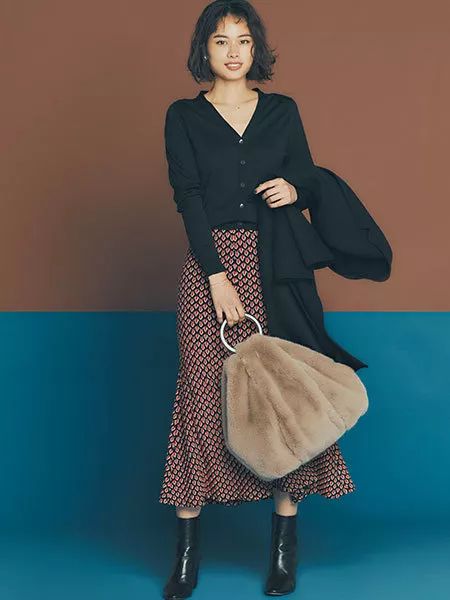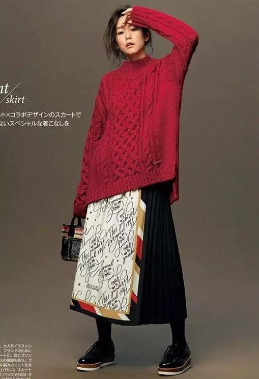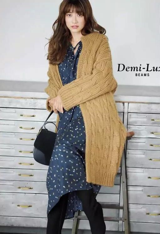 时髦精们喜欢把针织衫叠穿在一起,选择长裙下装,整一身保暖的同时看上去更有造型感。