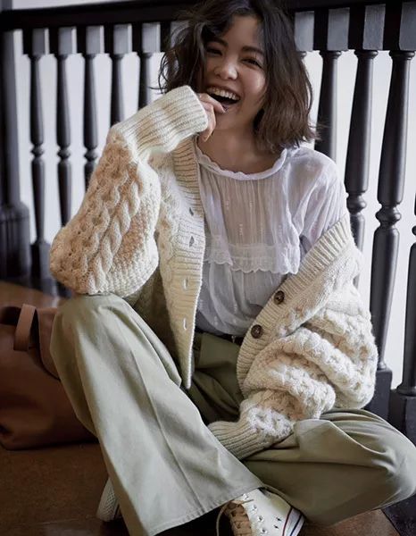 麻花毛衣上身自带复古年代感,很像爸爸上个世纪的老式针织衫,都带有一定厚度,现在降温的天气穿还蛮合适的,而且搭配好了会很显气质。