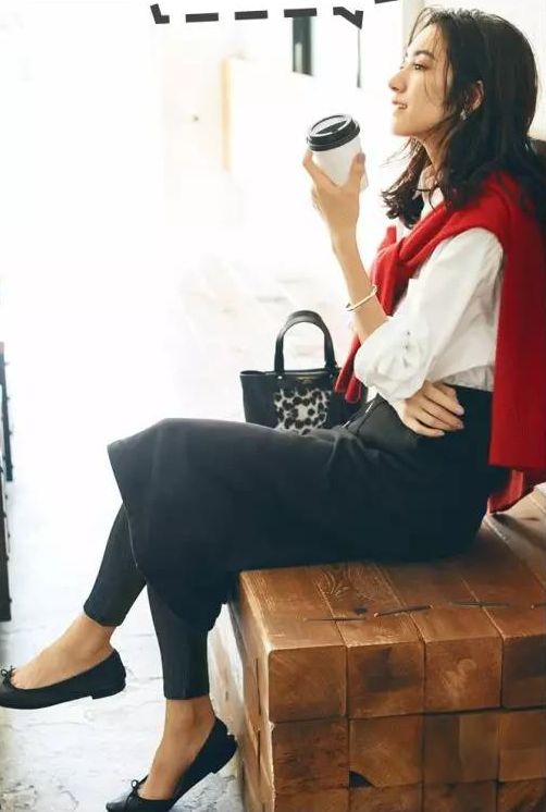 其实,只要把一件针织在脖子、肩膀等位置,或披着或打结,整体寡淡的look就顿显时尚感。
