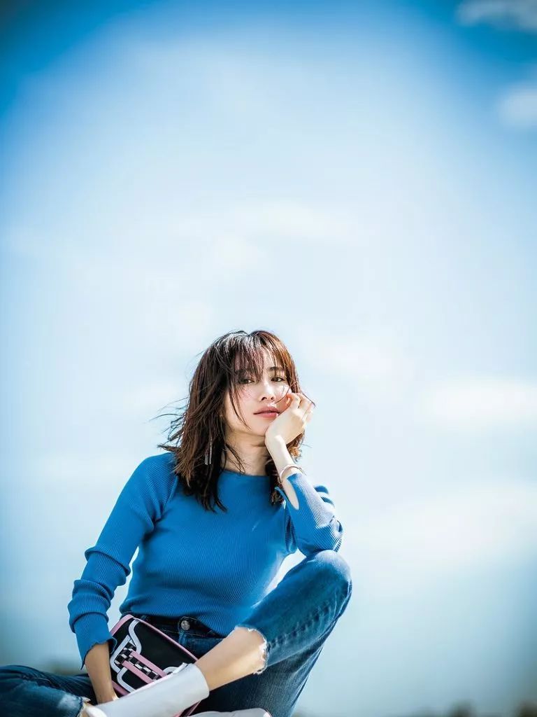 配牛仔裤长裤或是伞裙,完全是邻家小妹妹的感觉,十分减龄。
