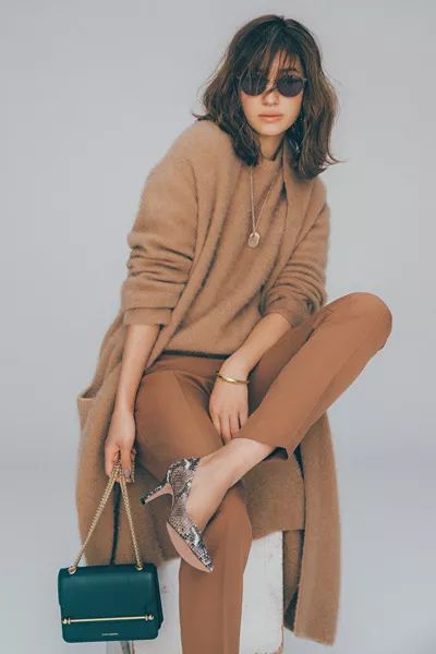 尤其是搭配针织单品,选择同色系搭配,深浅不同色度,不同材质叠搭在一起,更能穿出指针的好质感。