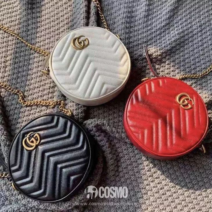 其中GG Marmont系列小圆饼包更是火得一塌糊涂。除了华丽的色彩和皮革,包包小巧可爱的设计和独特个性的结构形状也是它受宠的原因之一。