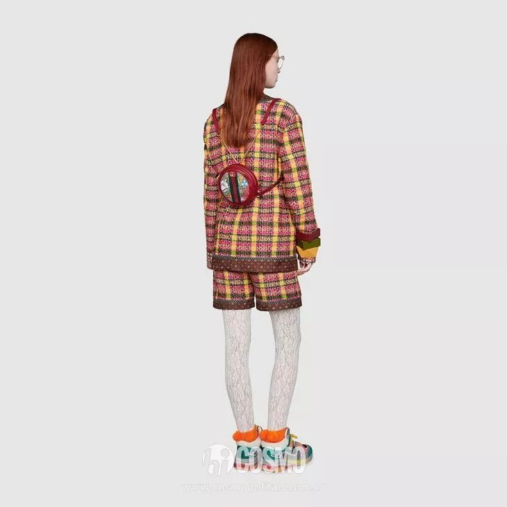 小巧玲珑的双G来自70年代gucci的典藏设计,老花来自1930年的钻石菱纹格。中间红绿色尼龙线部分摸起来有些毛茸茸的,复古又不失趣味性。