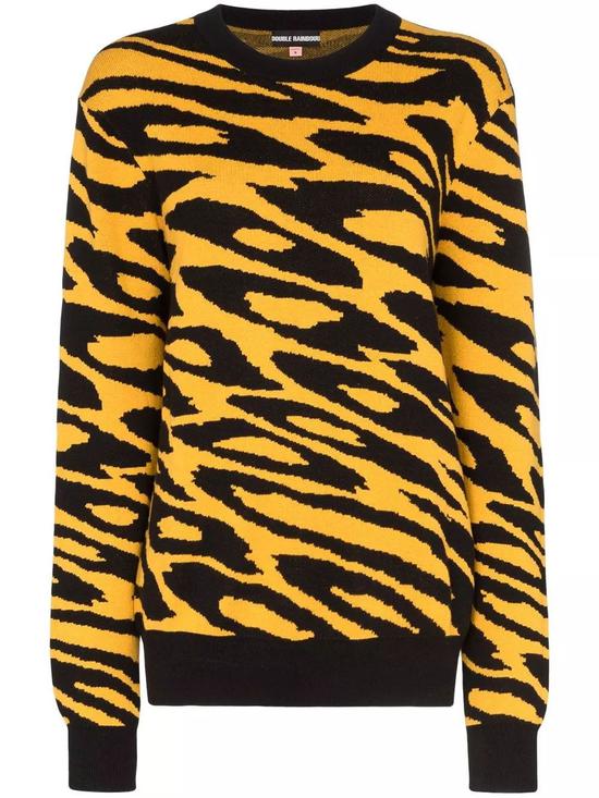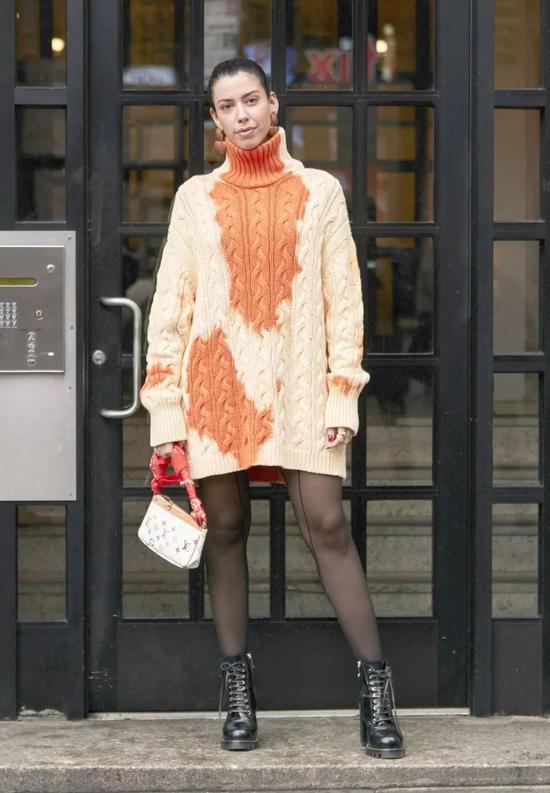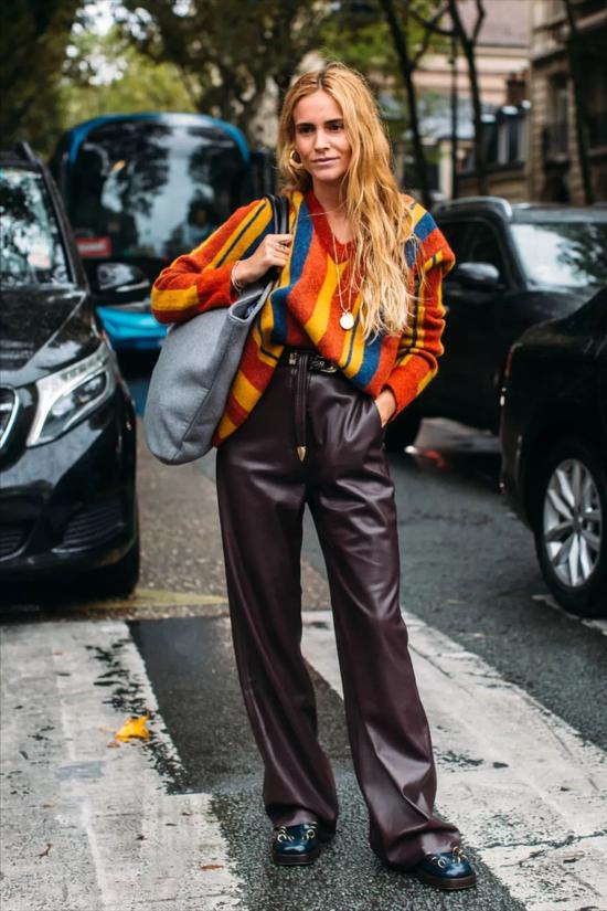 要说彩色毛衣,动物纹的又怎么能“缺席”?Gigi 这种橙黑色的斑马纹毛衣,让她的阔腿牛仔裤都复古了不少,外面只用搭一件纯白的外套(在她腰上!),都能让人想多看几眼的街拍达人。
