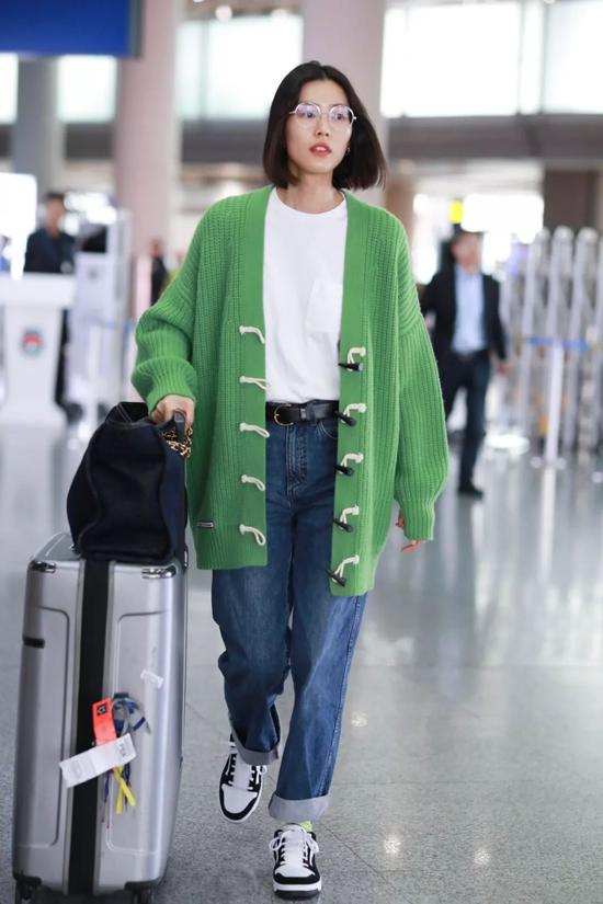 绿色的Oversize毛衣外套搭配老爹裤,青春感扑面而来。大表姐的腿都这么长了,还是会乖乖用高腰和腰带强调腰线,为什么你们老说刘雯的牛仔裤就穿得好看,都在细节里呀!