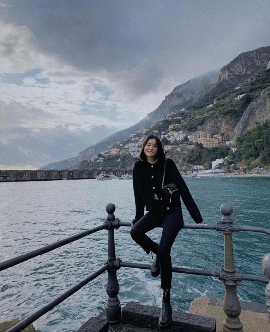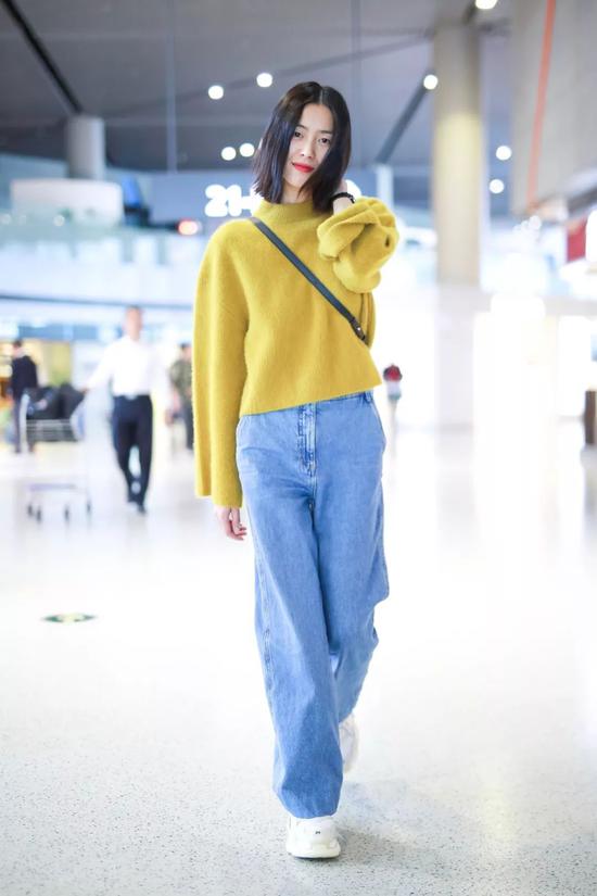 之前因为这张照片里的“巴掌腰“上了热搜(看见这个腰,编辑真实地留下了羡慕的泪水)。不过虽然不可以“炫腹”,小个子们倒是可以学学短款毛衣搭配“老爹裤”的穿法,胸以下全部是腿。