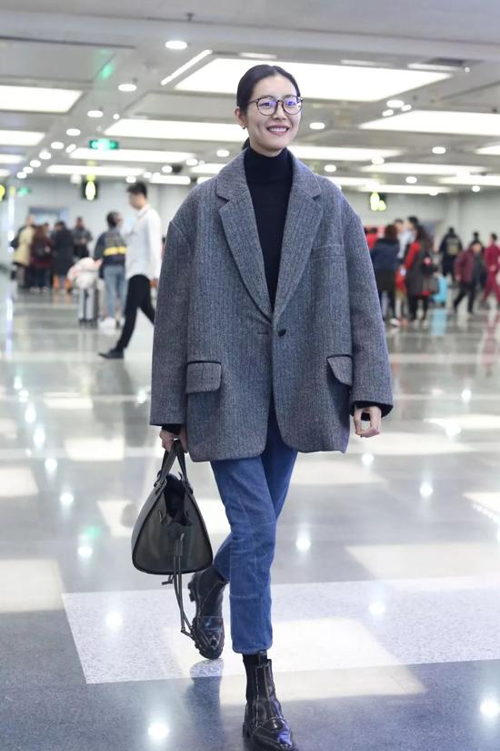 不要一到冬天穿大衣,就只知道搭配“光腿神器”,灰色的长款大衣里面搭配紧身牛仔裤和黑色短靴,只有“高级”两个字可以形容。
