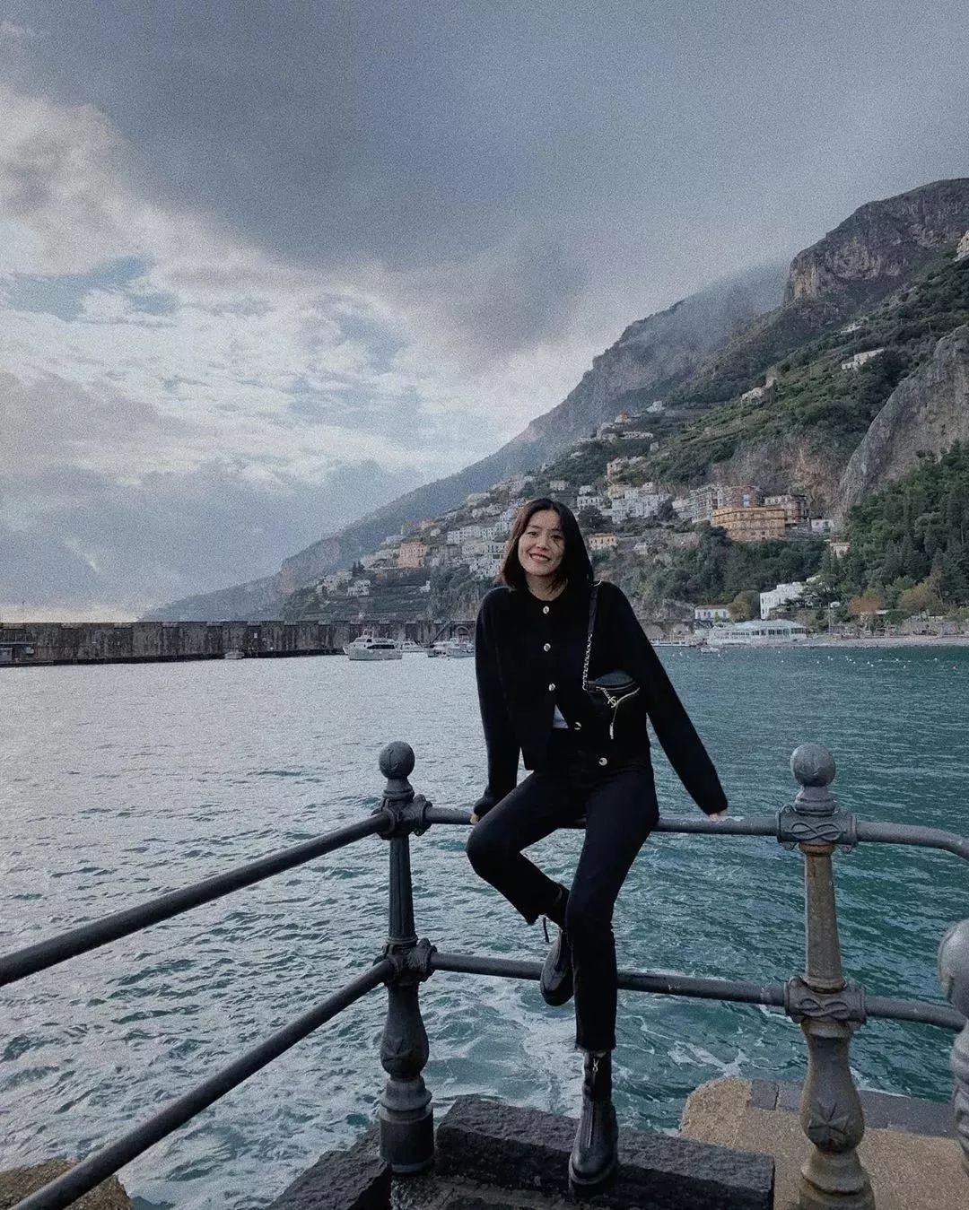 海边山间一身黑的她