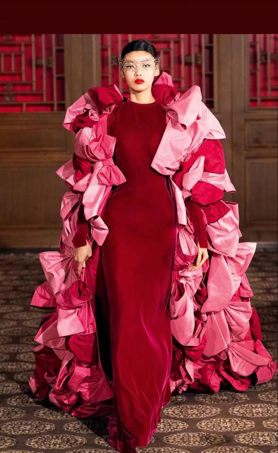 Valentino之前在北京办了场游园造梦的秀,华丽的礼服里就不少红裙的出场。