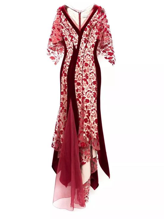Grace Chen的这条富∙美之真系列的“落红叠雨蕾丝礼服”编辑也是一眼看到就被惊艳到,整个裙子的线条非常流畅,看起来是凸凹有致。加上整个裙子是用蕾丝和丝绒的拼接,女人味十足,把女孩子最美的曲线都明确出来了~