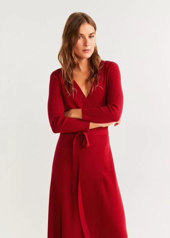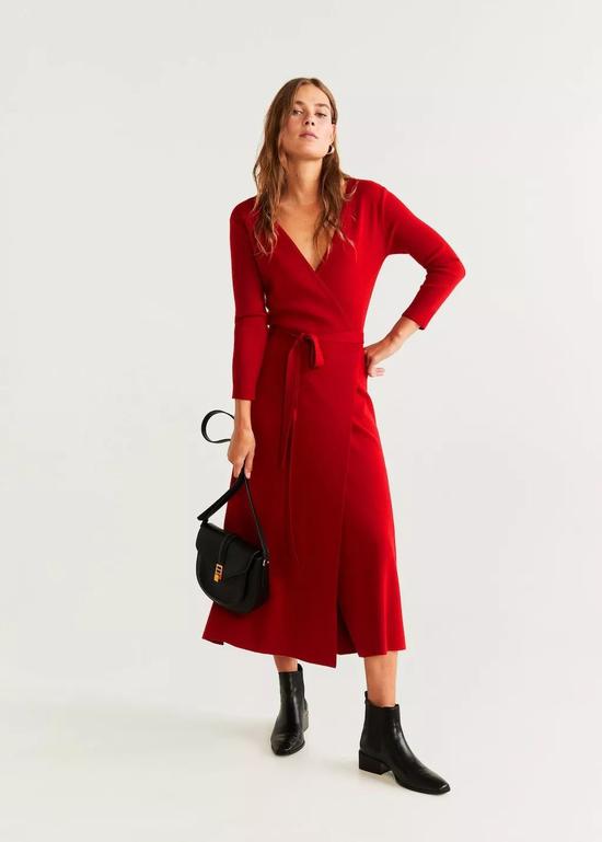 这件针织的红裙,v领的设计可以拉长颈部线条,系带的设计还可以提高腰线。况且它除了好看,还很保暖!Zara