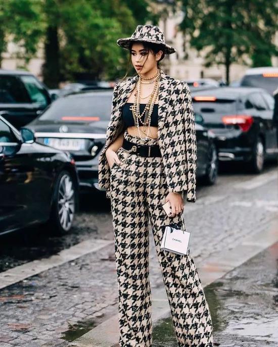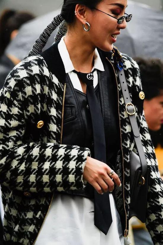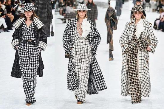 大气又个性的千鸟格被赋予黑白、黑棕两色,经典的套装宽大柔软,新款CHANEL 19手袋也拥有了千鸟格纹样,搭配金属链接更加复古;