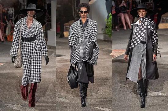 当然,在2019秋冬秀场上,我们也发现了很多经典的千鸟格纹。