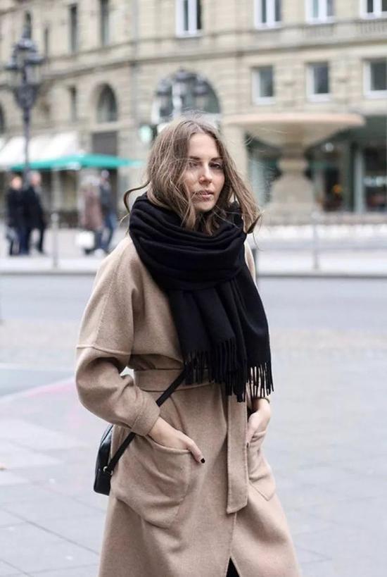 选择一款纯色的围巾随意地围在肩膀上,法式慵懒,就很高级啦