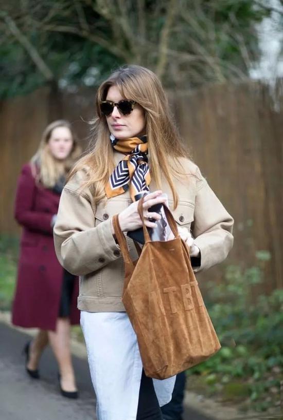 如果觉得今天的整套LOOK普普通通,丝质围巾立刻up气质,分分钟变身精致女人