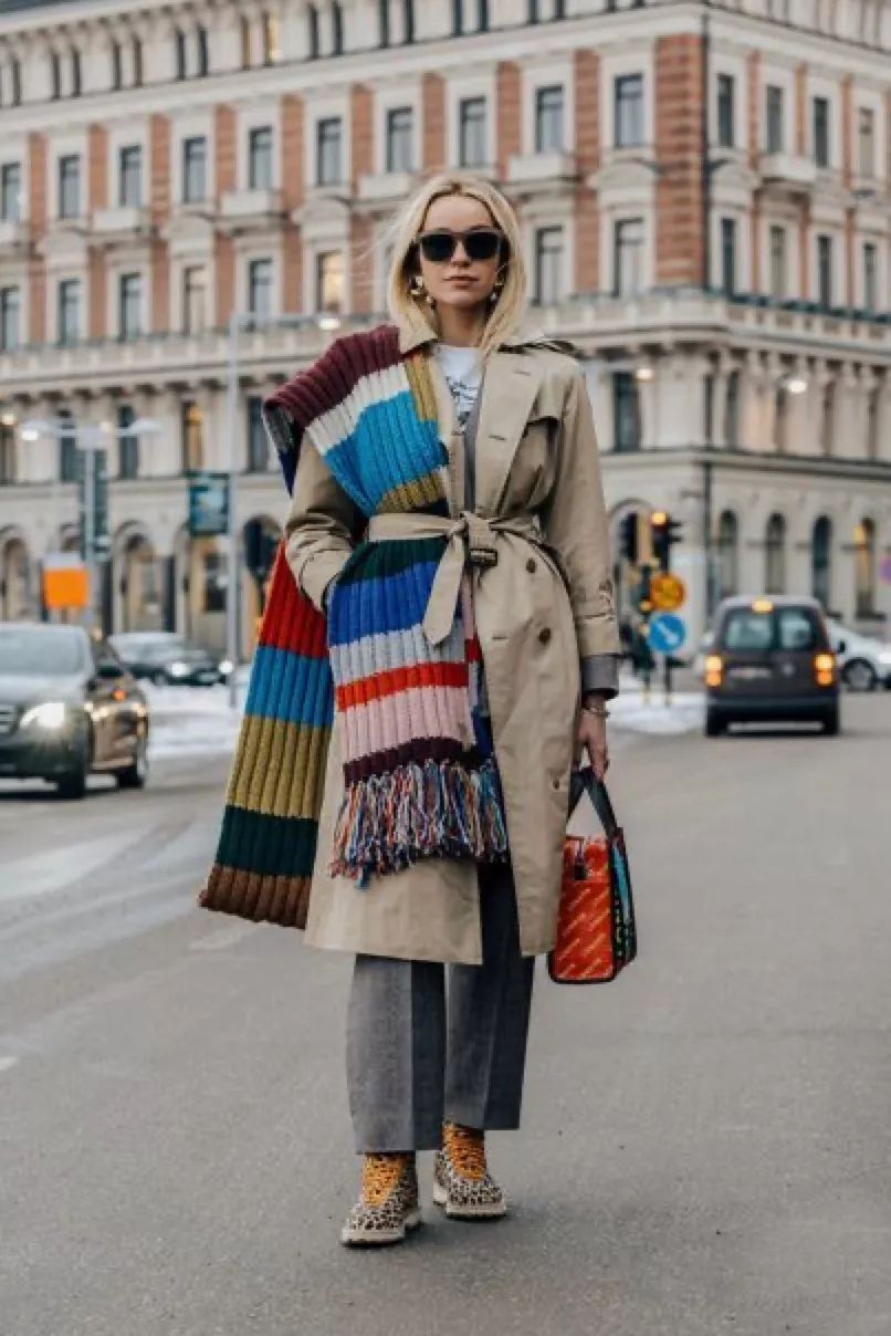 用大衣的腰带固定住围巾,也完全不担心会掉,彩色的活泼深色的高级,就看哪个是你的爱了