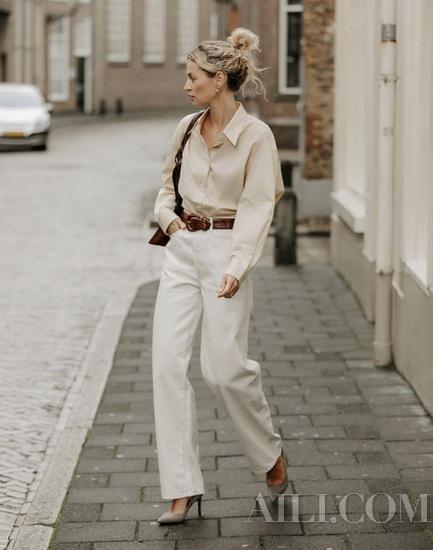 搭配略带休闲风的衬衫,一条白色长裤效果也是可以信手拈来的选择。