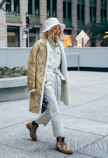 想在造型上来点新意,白色连身裤也可以加入选择的行列,适合冬日的连身裤在材质上要有几分厚重感,针织或者白色牛仔的面料冬日指数都能合格。
