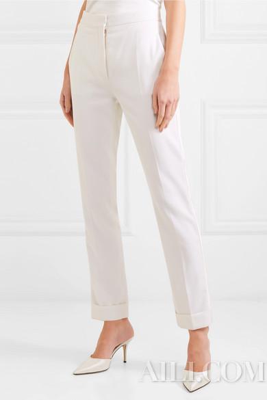 STELLA MCCARTNEY 缎布边饰粒纹羊毛面料长裤