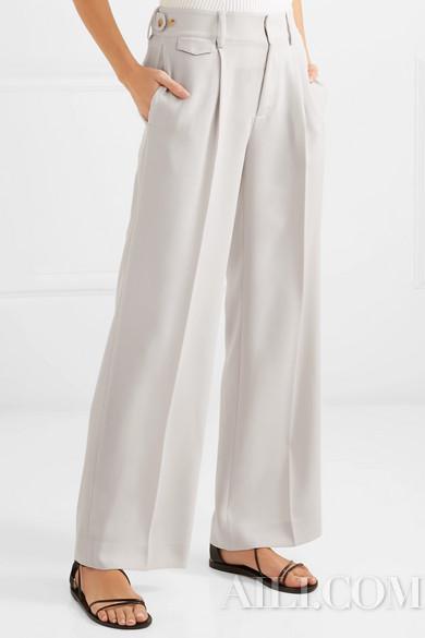 相比起紧身款的白色长裤,阔腿裤穿搭效果更好。裤子延伸到脚面,盖住高跟鞋或者短靴,让腿部线条自然拉长。阔腿裤对腿型的限制也较小,还能在寒冷的冬日加条厚秋裤,即使腿部线条不够纤细的女生也可以放心选。阔腿裤的裤型在挑选时尽量选择选择从大腿根部位置就开阔剪裁的版型,避免大腿位置过于拘谨。