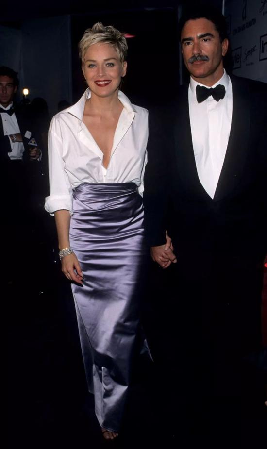 莎朗·斯通在1998年的奥斯卡红毯上穿着丈夫的Gap白衬衫,搭配Vera Wang缎面半身裙。看她穿的白衬衫,你就知道——想要惹人注意,真不一定需要什么花俏的款式,多解开几颗扣子就够了。