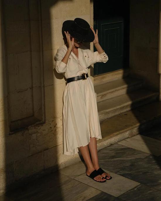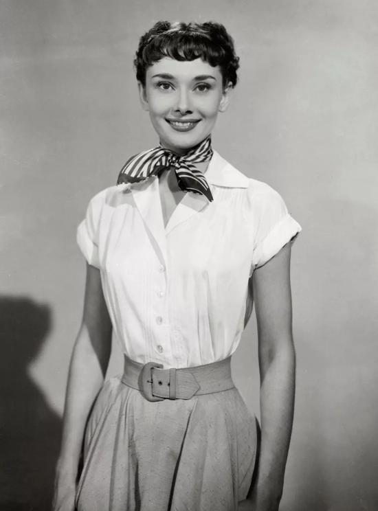 奥黛丽·赫本当年在《罗马假日》里的这个造型也是经典,当时服装师伊迪斯·海德并没有想好一个在外“游荡”的公主应该穿什么样的衣服,赫本向她提议说,白色棉质衬衫加一条棉布裙。
