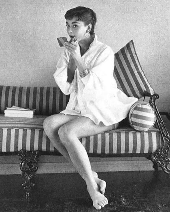 因为赫本就是个非常喜欢白衬衫的人,她除了会买最爱的棉衬衫,也会买肥大的男士衬衫,有点我们现在说的又纯又欲的意思。