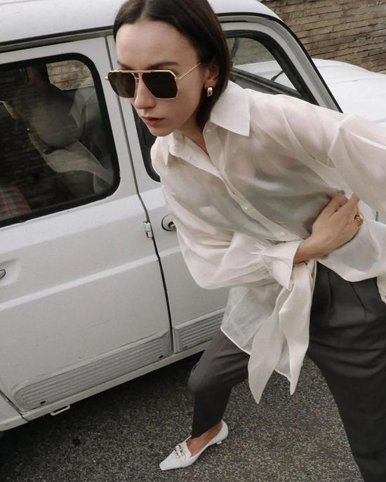 一向穿衣很“冷淡”的Beatrice Gutu在白衬衫的选择上倒是挺大胆的,透视硬纱衬衫隔着屏幕都能感受到仙气~