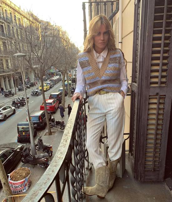 去年很流行的针织背心这个季节跟白衬衫一起穿刚刚好,基本款白衬衫可以像Blanca Miró Scrimieri一样搭彩色的针织,春天就要这样子嘛~