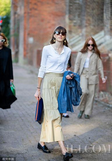浅色或者拼色的乐福鞋也可以在春天大胆尝试。白色的乐福鞋表现力更优,与运动风的小白鞋有异曲同工之妙。