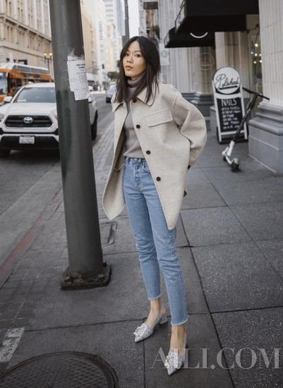 复古风的拼色粗跟鞋很适合搭配裤装来延长腿部线条,鞋的颜色不要选的过于夸张,黑色、裸色白色最适合日常,可以尝试加入铆钉、链条等有趣的细节,让设计低调丰富。