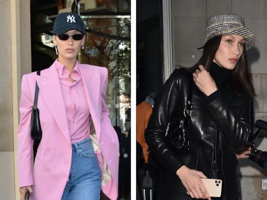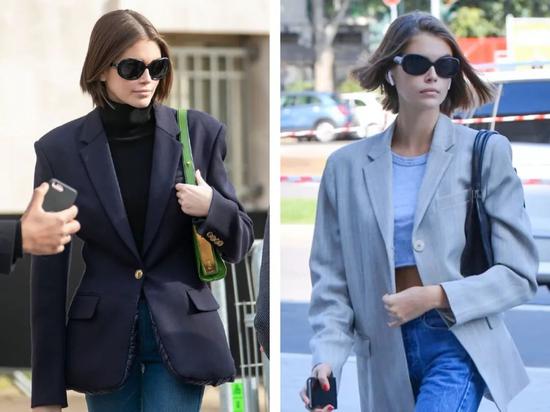 时髦妹妹Kaia也不甘示弱,硬挺的腋下包配西装帅气又硬朗,显得又A又攻。