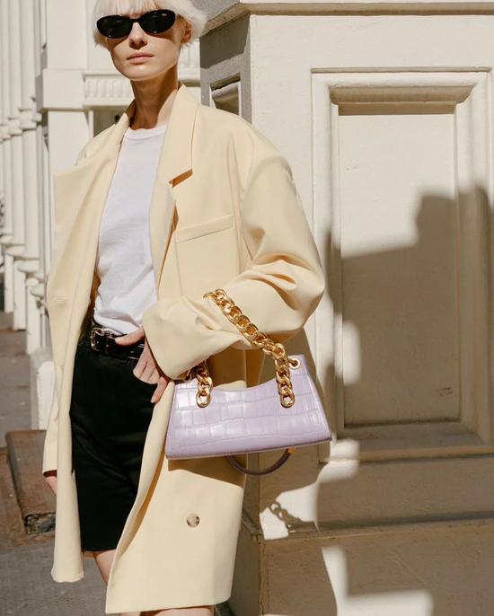 名字来源于《老友记》瑞秋的Rachel Bag最受欢迎,扁平、棱角,带着不过时的90年代风,极简设计彰显时髦;
