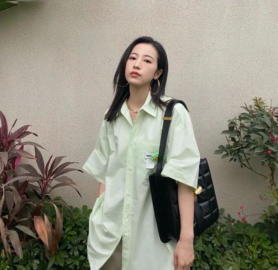 周雨彤肩背Bottega Veneta单肩包精致加分,搭配清爽的落肩衬衫更是干净率性。