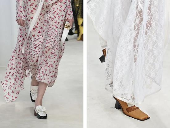 Proenza Schouler 2020春夏系列,方头鞋摩登又简约,给穿搭提供了更多的想象空间。