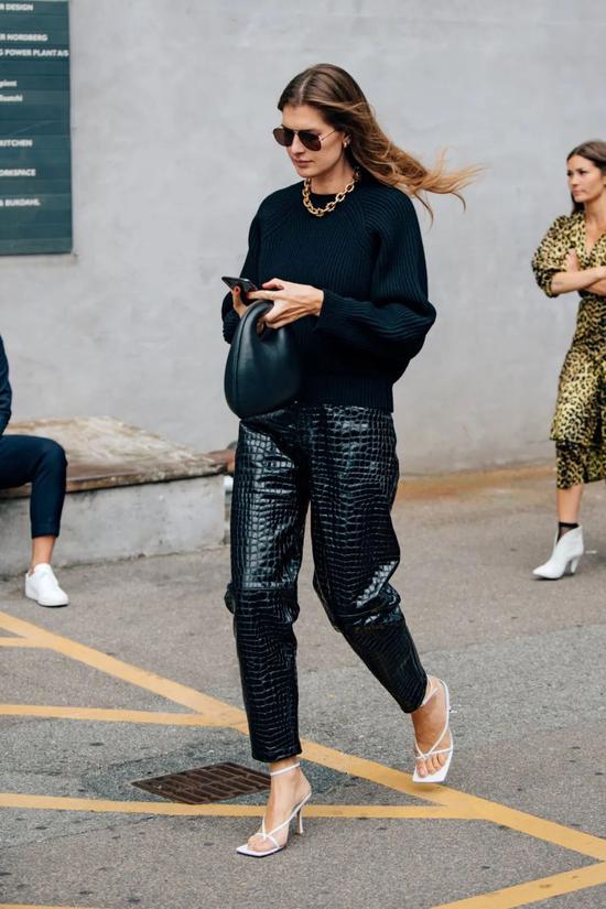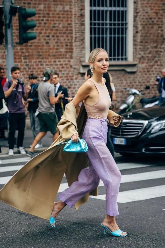 慵懒的方头拖鞋,成为街拍的“座上客”。