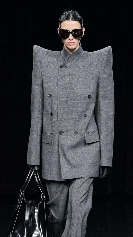 说起垫肩大廓形的风,这几年可谓是越吹越大,今年伊始便在Balenciaga 2020秋冬系列的秀场上达到了极致。