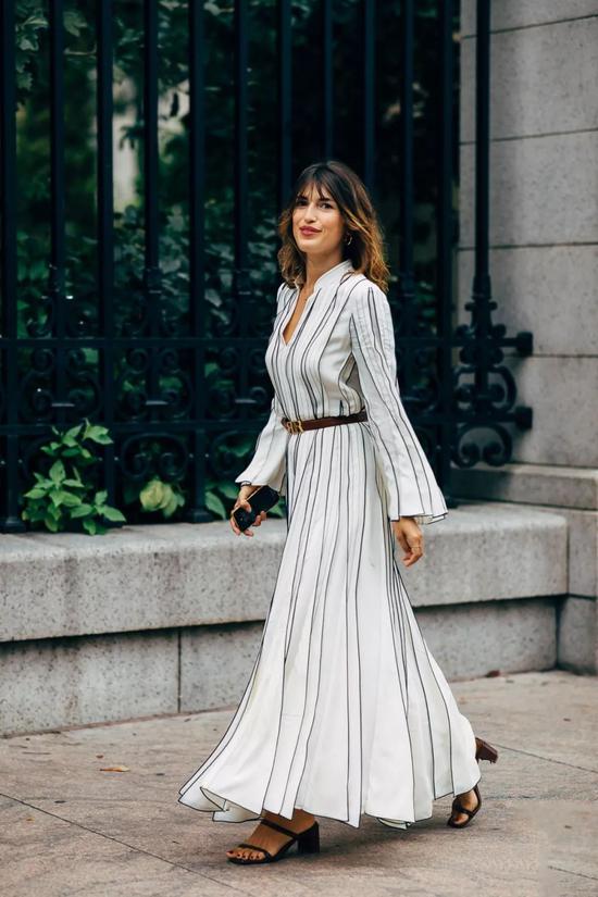 选择修身或者H-Line的长裙,最好带点收腰,会让身形看上去更加修长,小个子也无惧长裙啦。