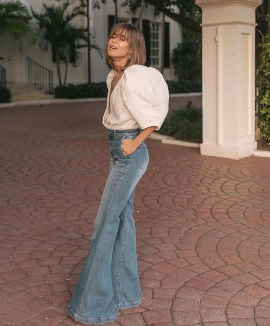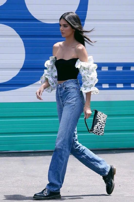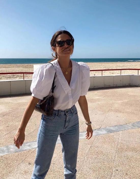 甜美复古的泡泡袖上衣与街头随性的牛仔碰撞,是意想不到的活力四射。泡泡袖为整体注入了活泼飘逸的感觉,这个春天一定要试试这种穿法。