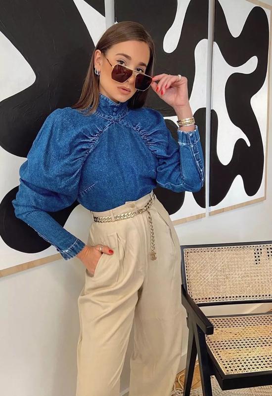 搭配英朗帅气的高腰工装裤,即使是泡泡袖也无法阻止我继续做Tomboy了。腰部用腰带收紧,勾勒出曲线,显瘦又有范儿。
