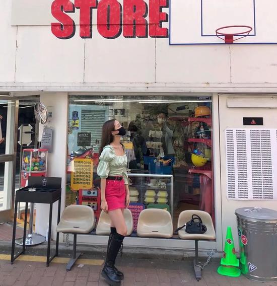 穿什么都很有自己味道,而且穿什么都能和马丁靴混搭的宋妍霏。一套look里不仅有泡泡袖还有荷叶边和粉红色,但是和马丁靴一搭配,公主风瞬间被中和掉了。