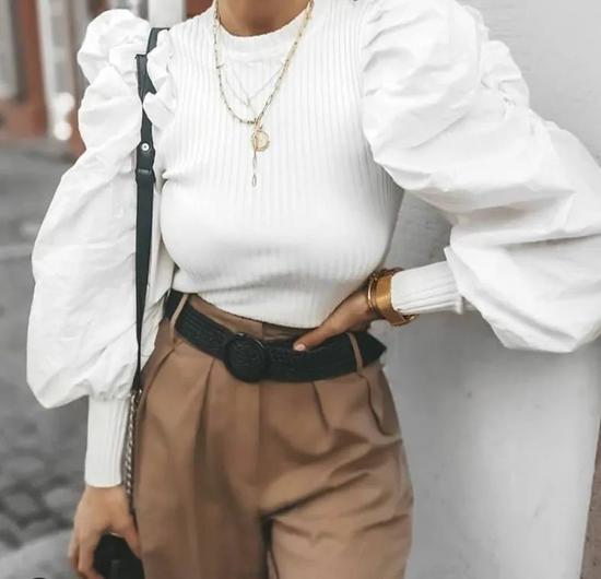 泡泡袖上衣与裤装的搭配,比连衣裙还要出彩,这才是今年泡泡袖最chic的穿法。